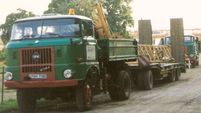 In den achtziger Jahren kamen die ersten Frontlenker-LKW Typ W 50 Allrad-Zugmaschinen und, nach langen Kämpfen mit staatlichen Stellen, ein Bagger hinzu. So konnten die Umschlagsarbeiten mechanisiert werden.